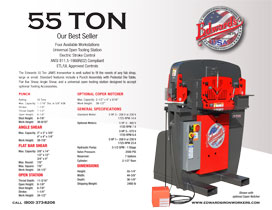 La Edwards 55 ton es la ideal para talleres pequeños, medianos y grandes. Las características principales incluyen accesorio para punzonado, con operación con pedal, cizalla para platino y ángulo, y estación universal abierta de herramientas diseñada para aceptar herramientas adicionales.