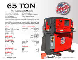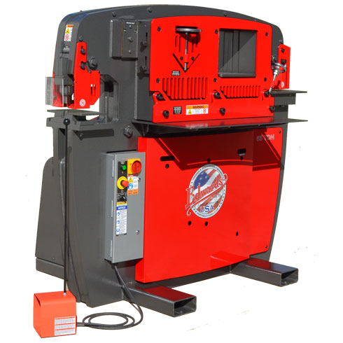Las 5 estaciones de trabajo de las Edwards 65 Ton le da el poder de trabajar cualquier tamaño y la flexibilidad de ajustarla a sus necesidades. Las características principales incluyen accesorio para punzonado con operación con pedal, 24’’ de cizalla para platina, ángulo y sacabocados. Además una estación universal abierta diseñada para accesorios opcionales.