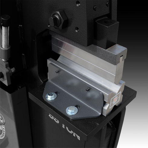 Disponible de 7’’ , 8’’, 10’’ y 12’’ de largo (el largo varía dependiendo de la máquina). Este accesorio incluye un punzonado estándar y un dado de 4 caras que permite doblar el material a 90° de ángulo, (1/16", 1/8", 3/16" y 1/4").
