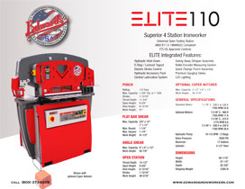 Las principales características de la ELITE 110 incluyen Accesorio para punzonado, cizalla para platina, cizallas para ángulo y estación universal para diferentes opciones de herramientas.